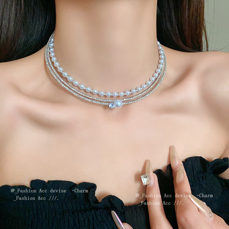 多層ダイヤモンドジルコン人工真珠円形首輪フランス軽贅沢風デザインネックレス復古百合首飾り女