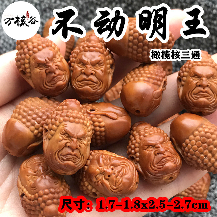 オリーブの核不動明王三通の小さい種のオリーブの彫刻の仏の頭の男女の文は遊んでオリーブの胡手のチェーンのブレスレットを配合します。