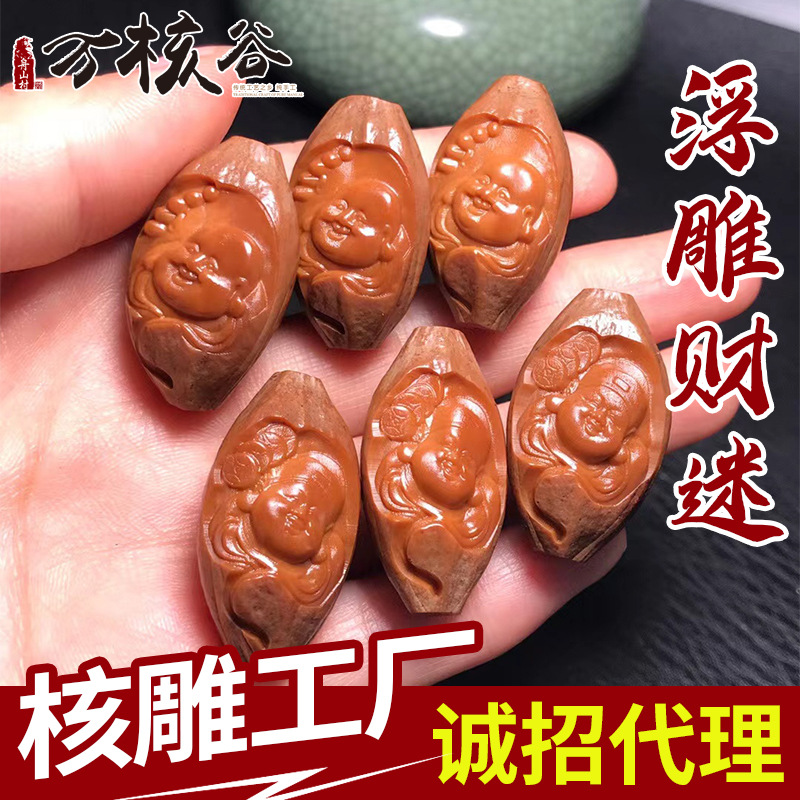 新しいオリーブの核の弥勒の一体の三通の単種の吉祥の如意の手の串はdiyの浮き彫りの子供を配合します。
