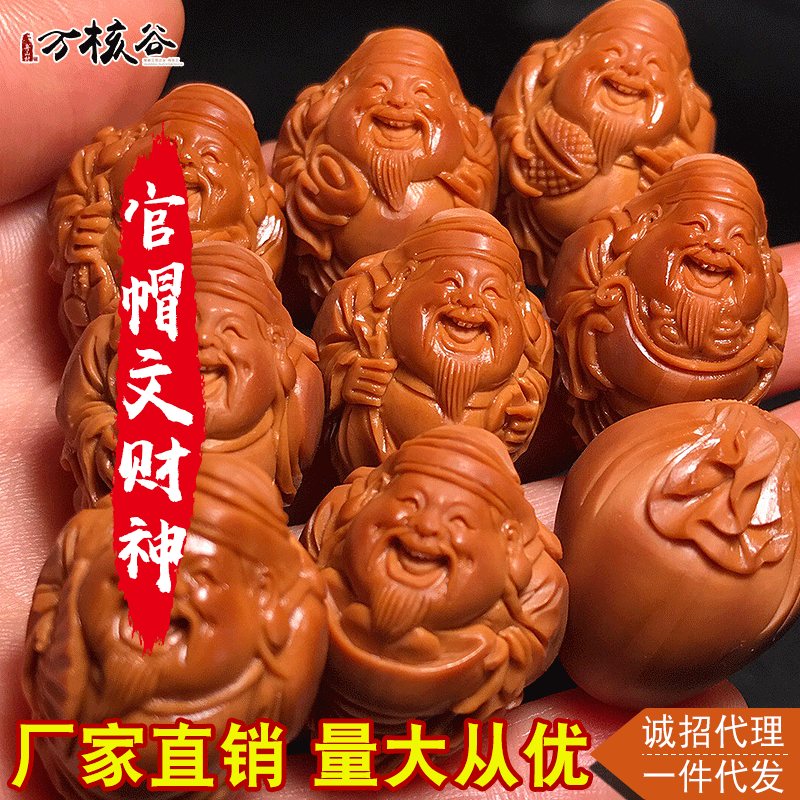 オリーブの核の単一の種の手の串の官の帽子の文の財神は宝物を持って吉祥事を祝います。