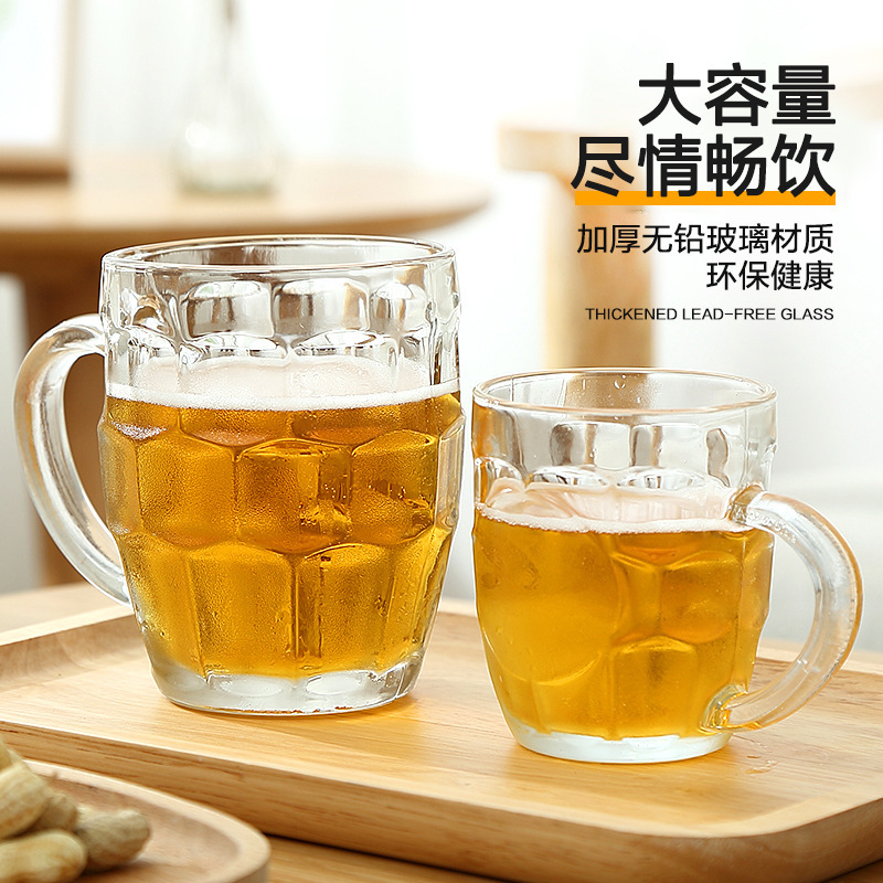 ビールカップ家庭用コップ耐熱グラスカップ大容量接客パイナップルカップ取っ手付きビールカップ