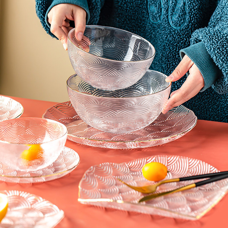 欧米風高颜値浮き彫りガラス皿高級感透明皿菓子皿パン皿朝食果物皿小食皿