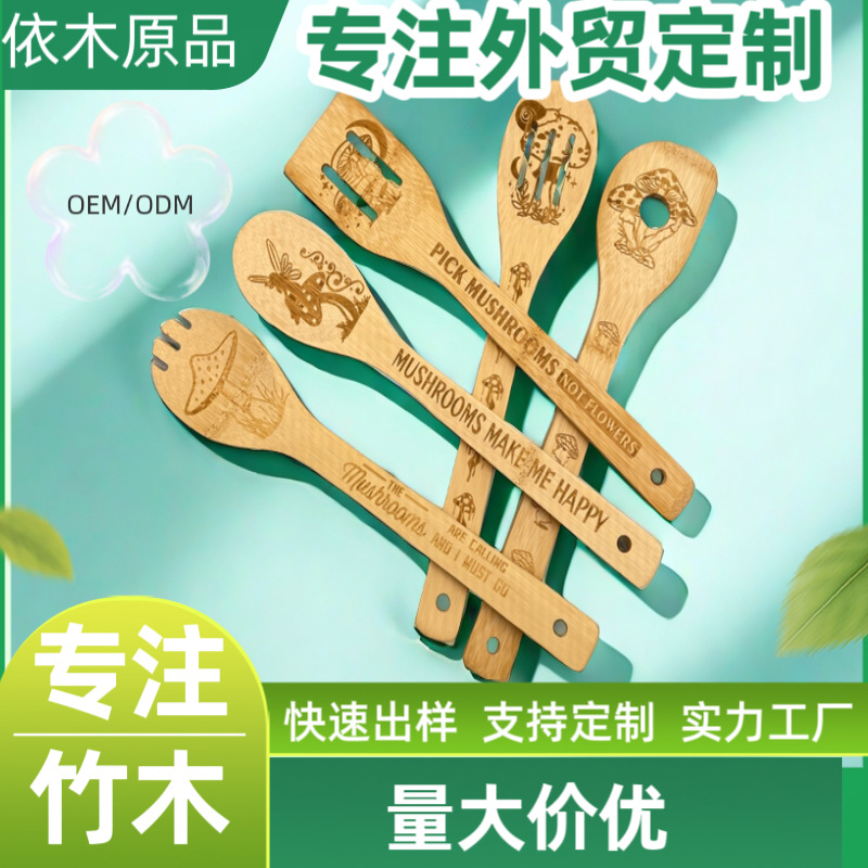 国境を越えたアマゾンのクリエイティブレーザー竹シャベルは鍋にくっつかない竹製セット料理5点セット