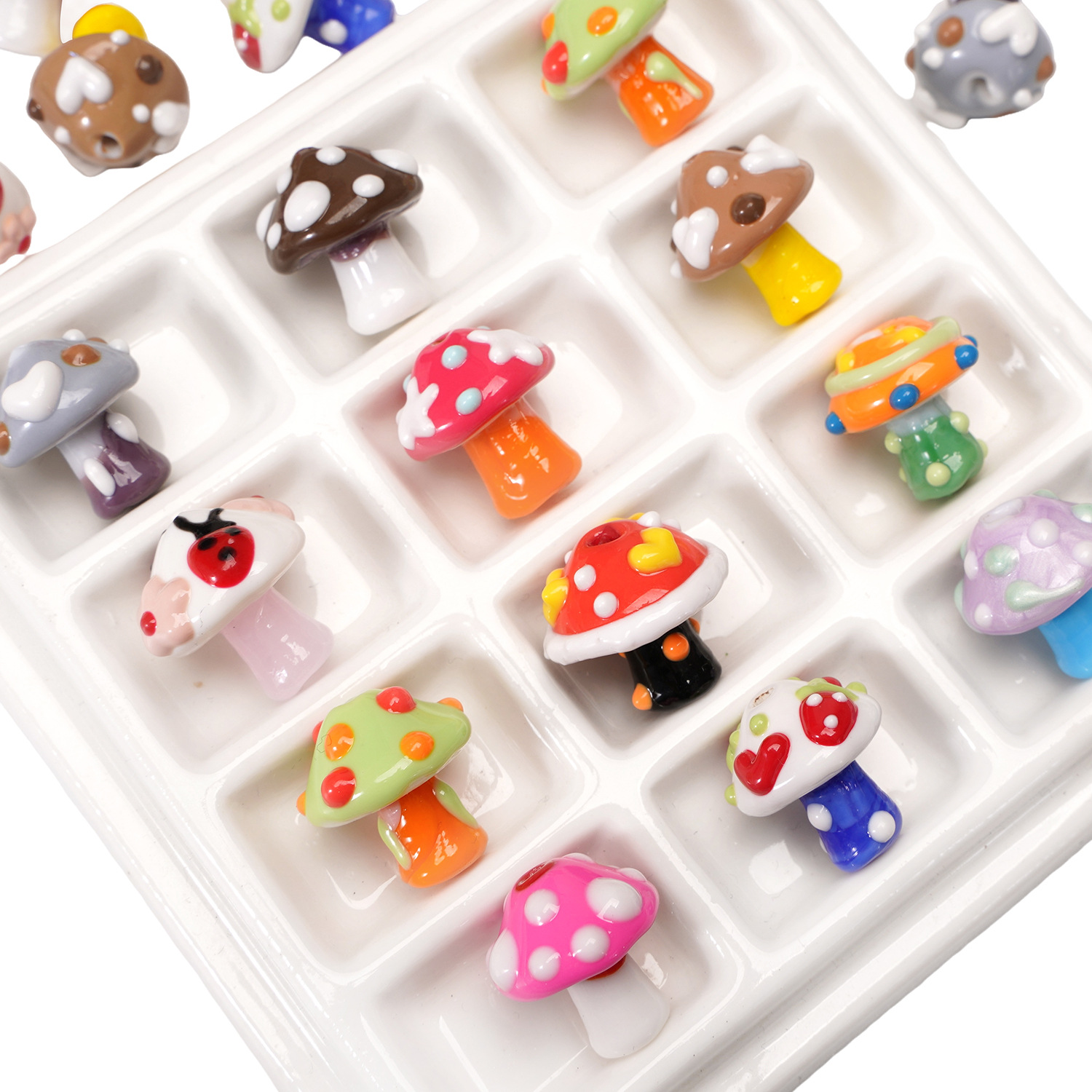 手描きキノコガラスビーズ自家製 diy ハンドビーズジュエリー素材ブレスレットバッグペンダントネックレスガラスルースビーズ