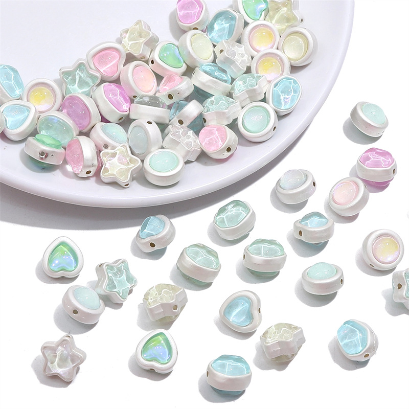 アクリル春色五角星珠中珠diy手編みビーズ髪紐材料自作ブレスレットアクセサリー
