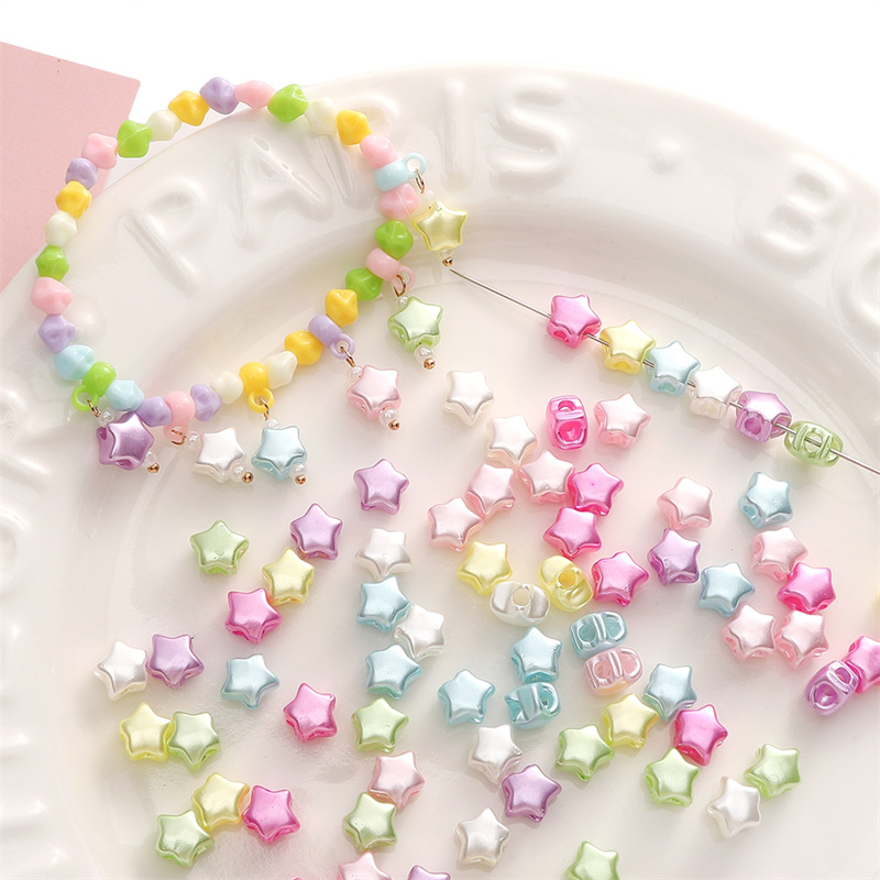 アクリルメッキ真珠光五角星四通珠散珠手作りdiy手ビーズアクセサリー材料部品