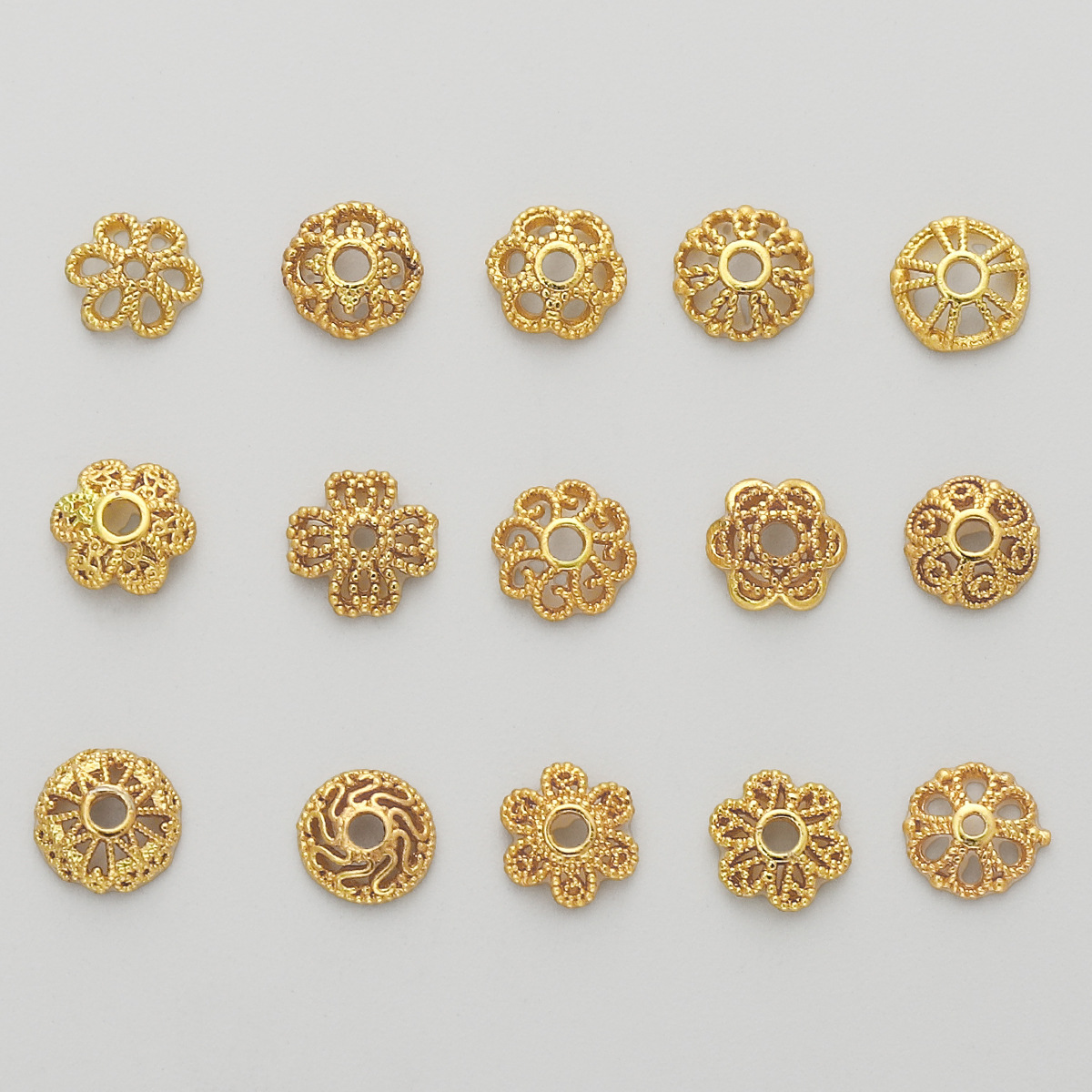 18k保色銅製保色古法沙金透かし彫り花托手作りdiyブレスレットネックレス多デザイン透かし彫りスペーサー