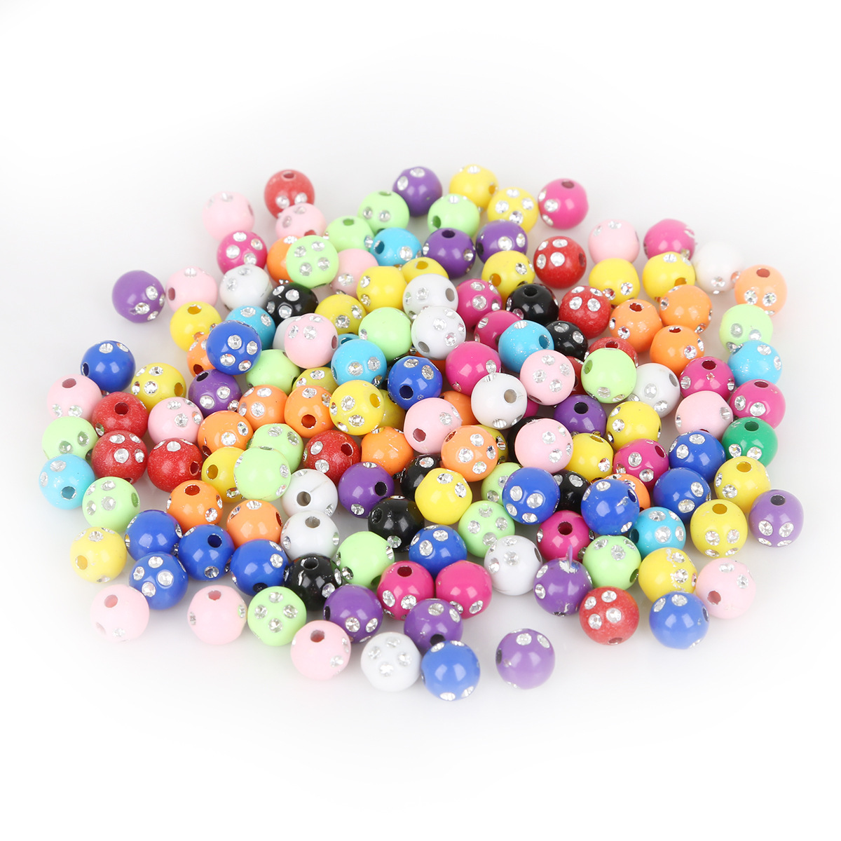 アクリル製ダイヤモンド付き丸玉ビーズ、DIY手作りブレスレット、ネックレス、ジュエリー、ルースビーズ、バッグアクセサリー、ビーズ