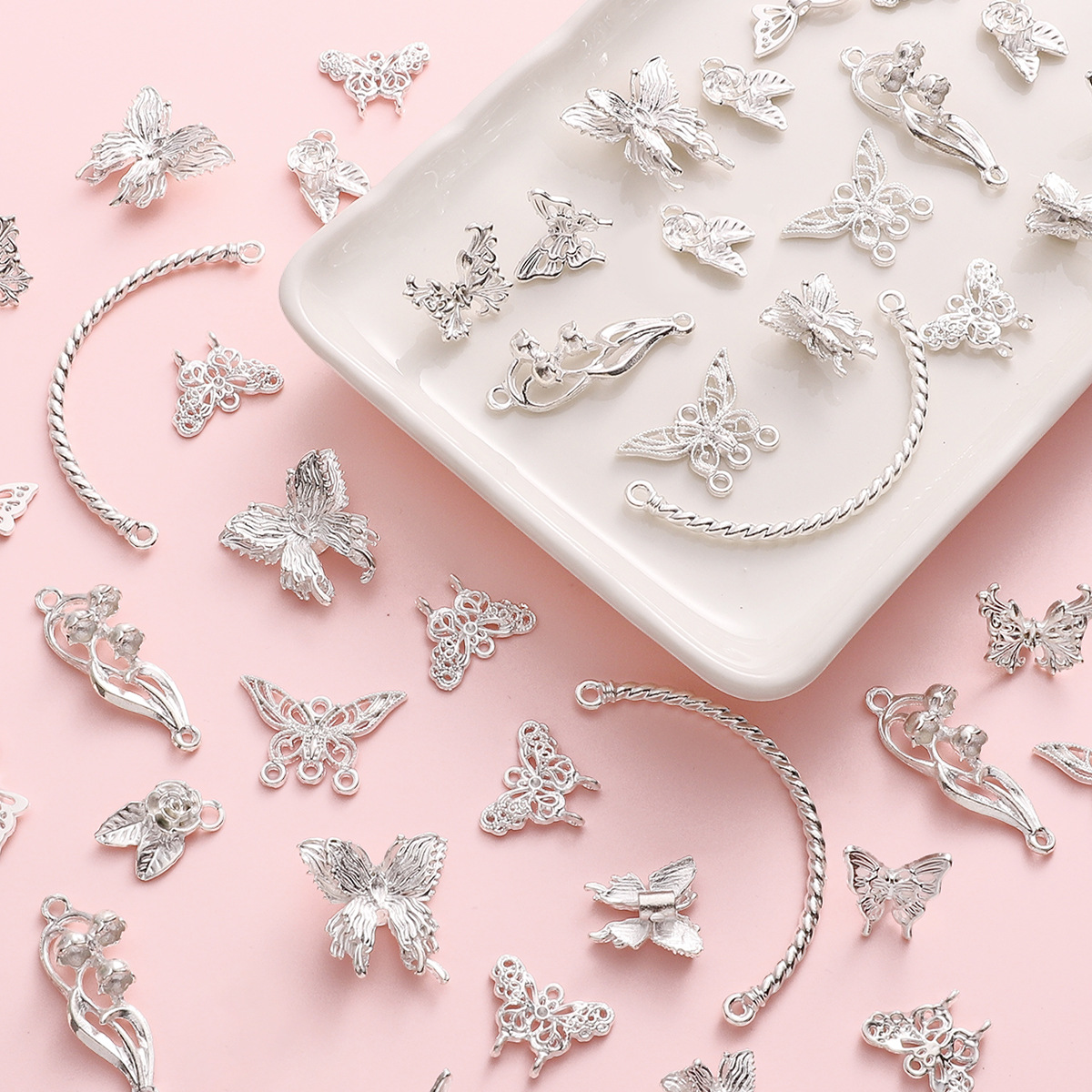 合金古銀愛花蝶ペンダントアクセサリー手作りdiyレトロ耳飾りブレスレットネックレス製作材料