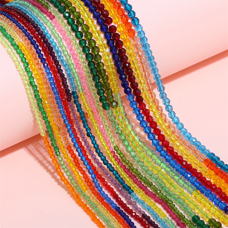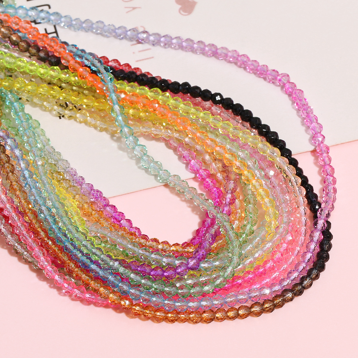 2/3mm グラデーションマルチカラークリスタル塗装カットガラスビーズ 手作りDIYブレスレット用ビーズ ルースビーズ素材卸売