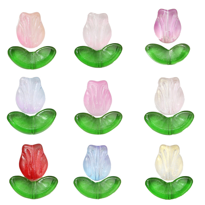 ゼリーパウダーグラデーションガラスチューリップ花びら手串ビーズ材料DIYブレスレット瑠璃アクセサリー卸売り