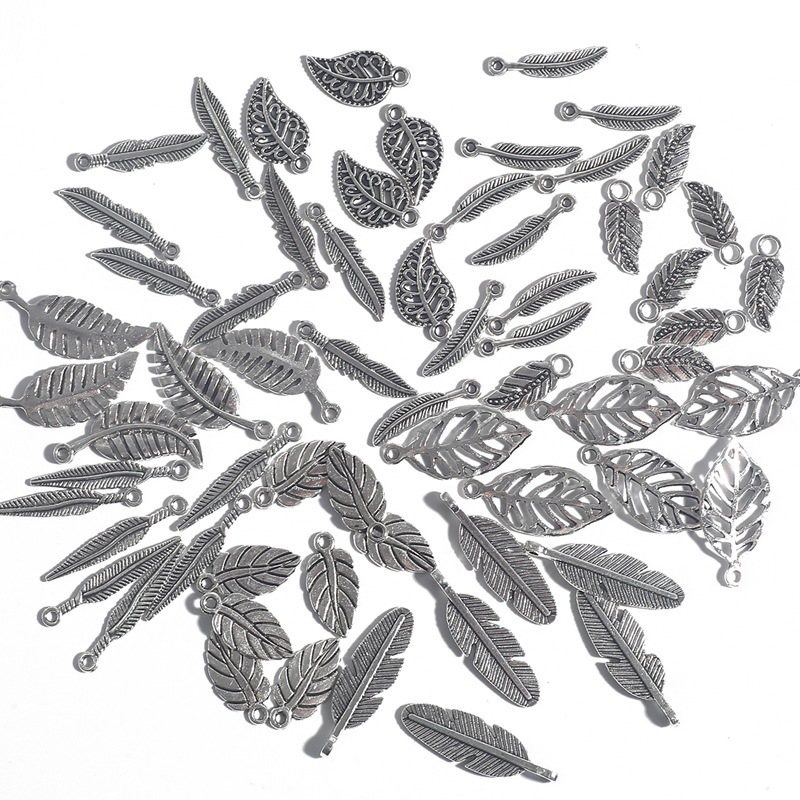 DIY素材 電気メッキアンティークシルバー合金の葉っぱ型アクセサリー ブレスレットやネックレスのペンダントやチャーム作り 手作りDIY