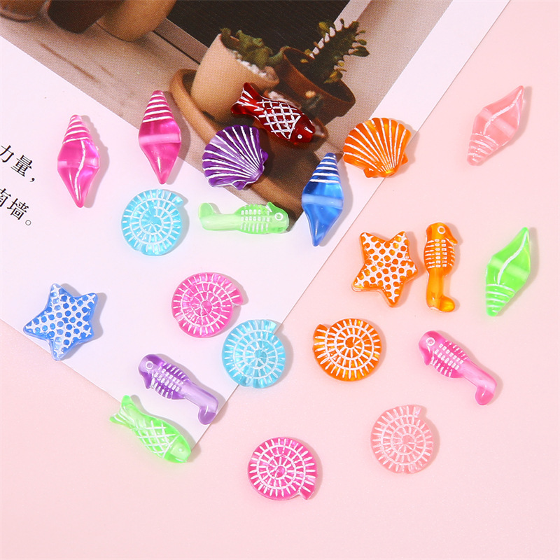 アクリルレリーフプリント海星貝殻ビーズイヤリングdiy材料手作りブレスレットネックレス部品散珠