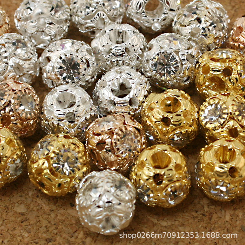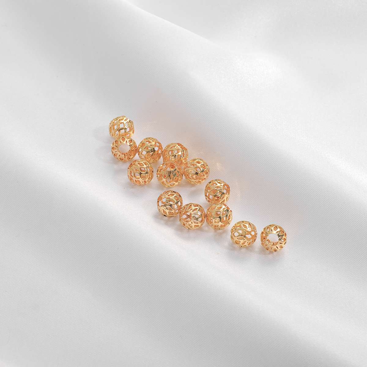 銅製18K透かし彫り丸玉ビーズ、散珠、DIY手作りブレスレット、ヘアピン、イヤリング、ジュエリー素材、アクセサリー、手作りDIY