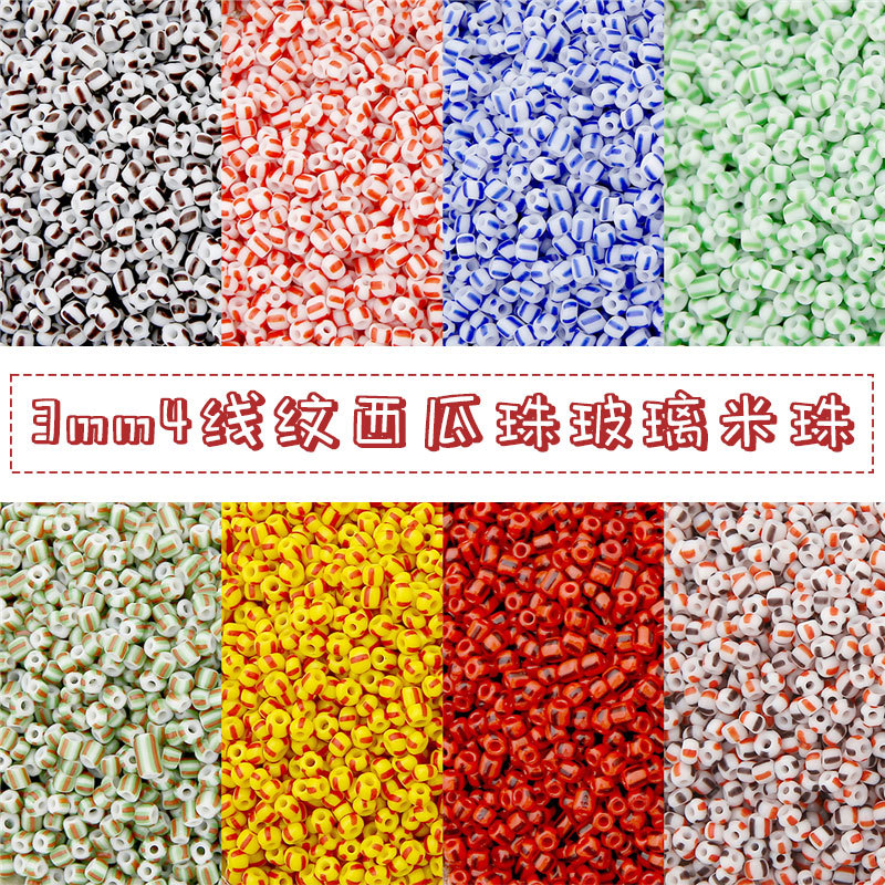 3mmガラス米珠ネックレスブレスレット散珠diyアクセサリー縞スイカ珠手作りビーズ自作材料バッグ