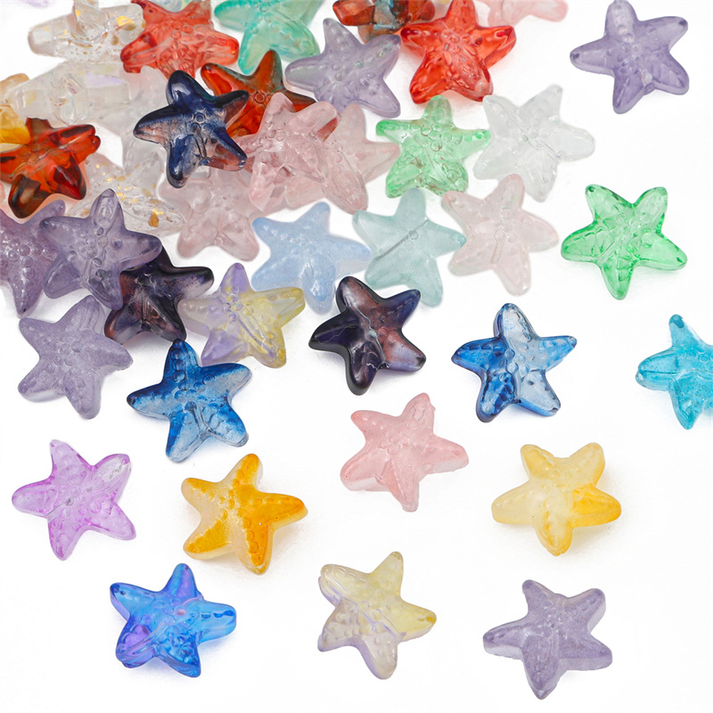 10個のガラスを入れた海辺の小さな海星散珠DIY手作りの星の直孔瑠璃ビーズのチェーンネックレスのアクセサリー