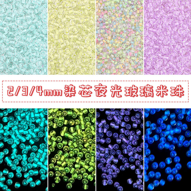 クロスボーダー 2/3/4 ミリメートル染色コア蛍光ライスビーズ発光ビーズ diy 手作り自家製ブレスレットイヤリングネックレスビーズ素材