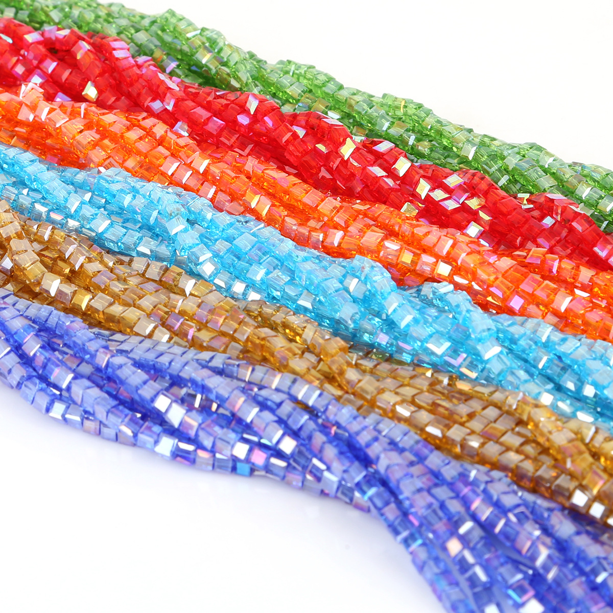 2-8mmガラス水晶方形ビーズ手作りdiyアクセサリー材料ビーズメッキ角ビーズアクセサリー散珠
