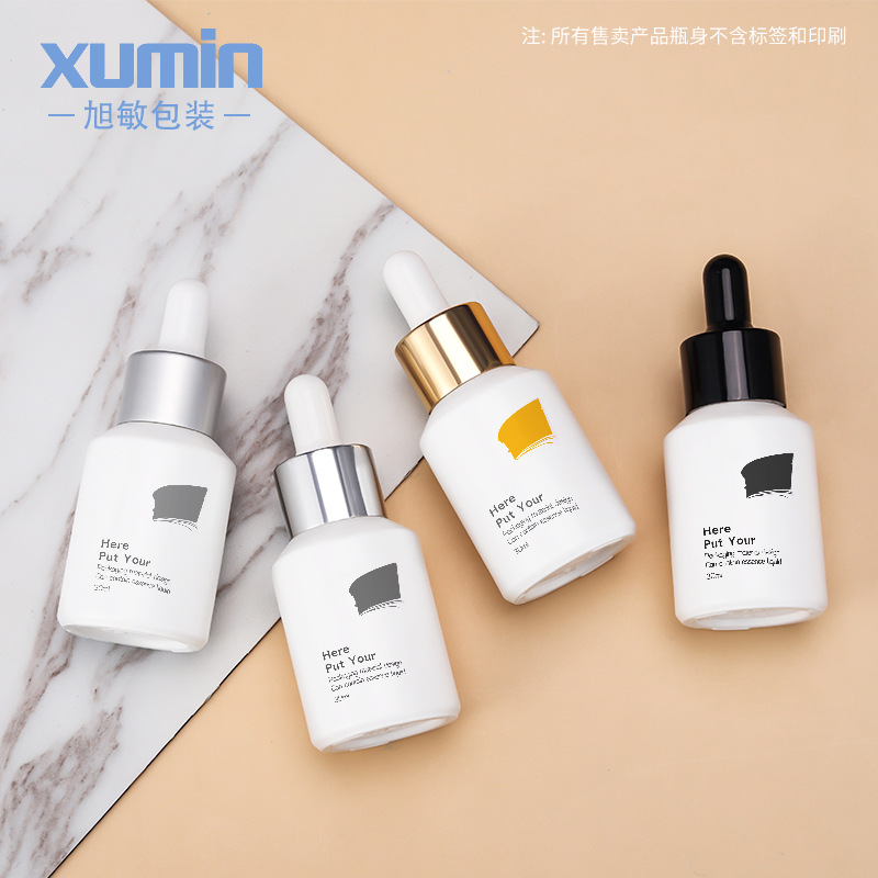 旭敏包装現物30mlガラス滴管瓶ダントホワイト斜め肩精華液原液瓶金属リング分注瓶