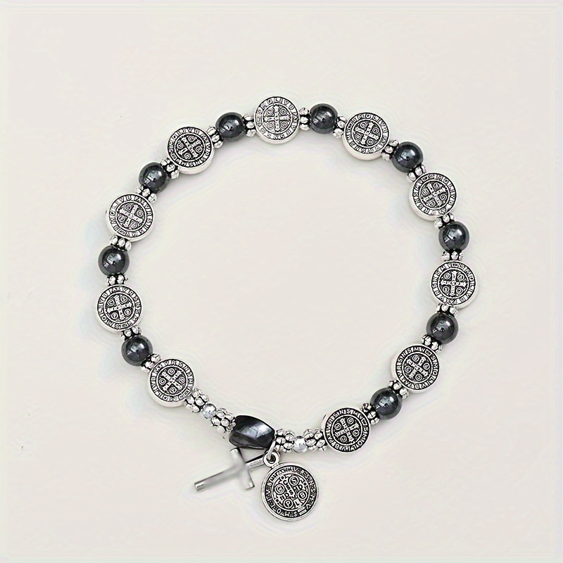新しい個性的なクロスブレスレット黒胆石数珠合金クロスペンダント