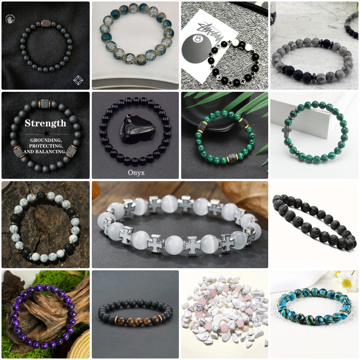 クロスボーダー爆発男性火山石ブレスレットブロック黒メノウファッションファッションのジュエリーは現代紳士に適している
