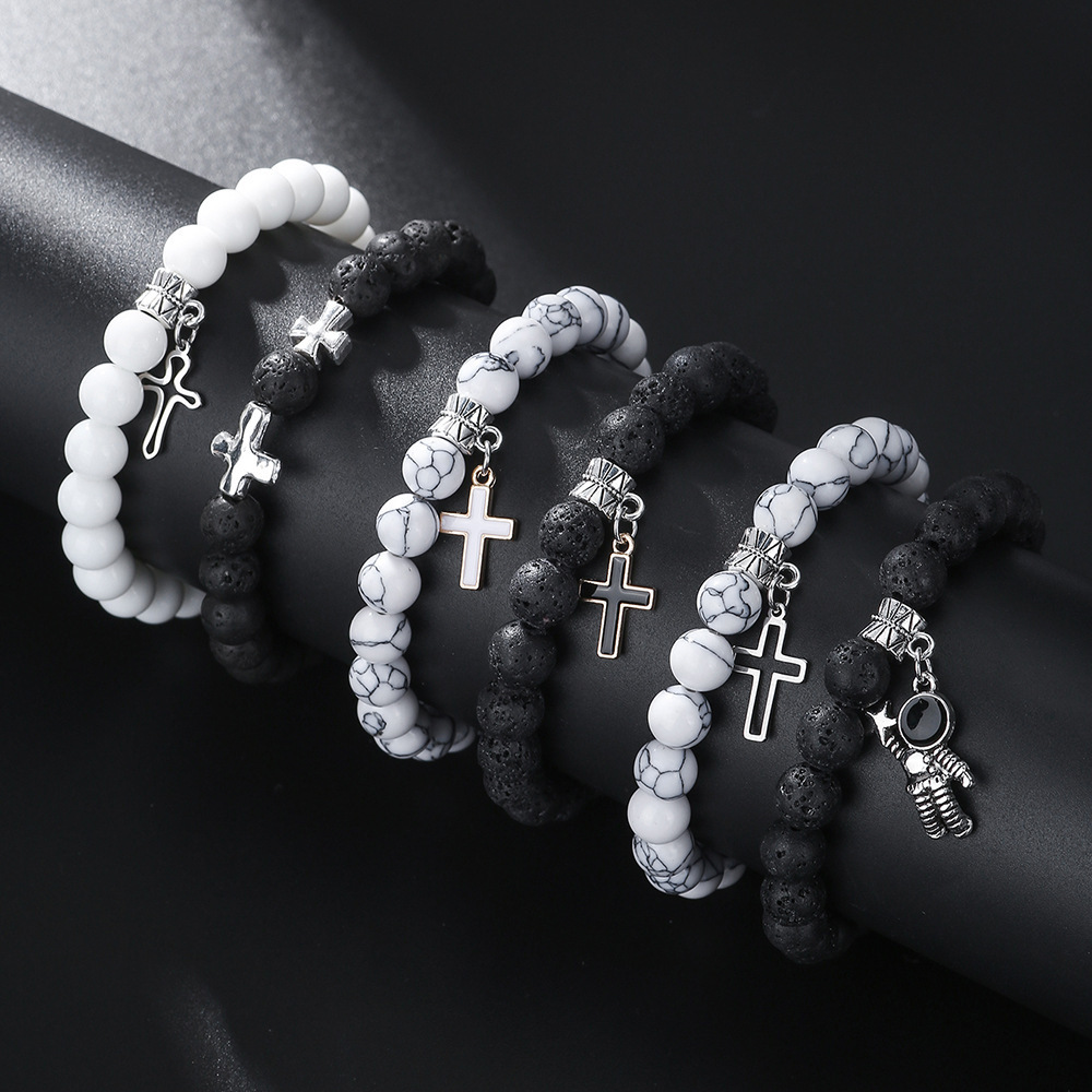 8mm白松火山石カップルブレスレットセットクロスボーダー人気クロスクロスクロス宇宙飛行士ペンダント弾力ブレスレット