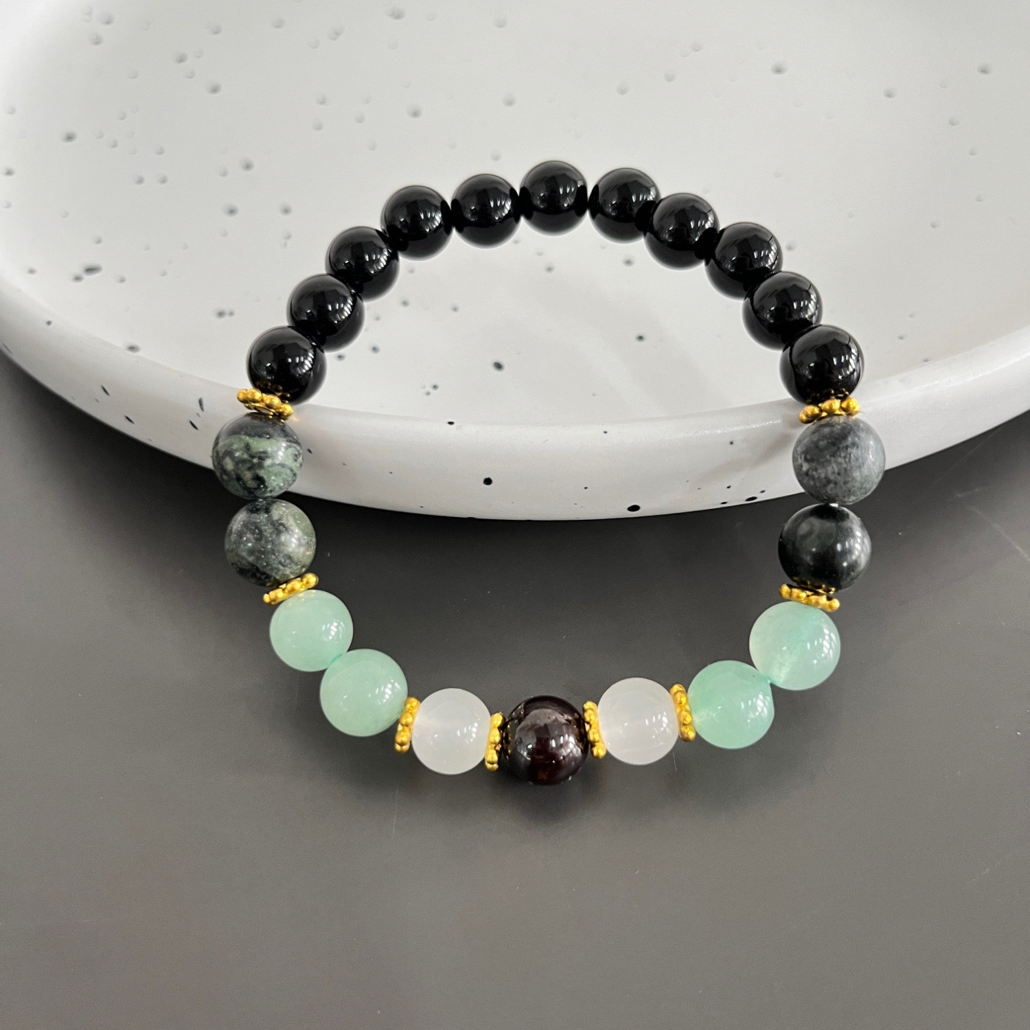 temu Xiyin TK クロスボーダーホットスタイルブレスレットグリーンポイントストーンフラワーグリーンジェイドとその他の 5 つの天然石製ブレスレット卸売