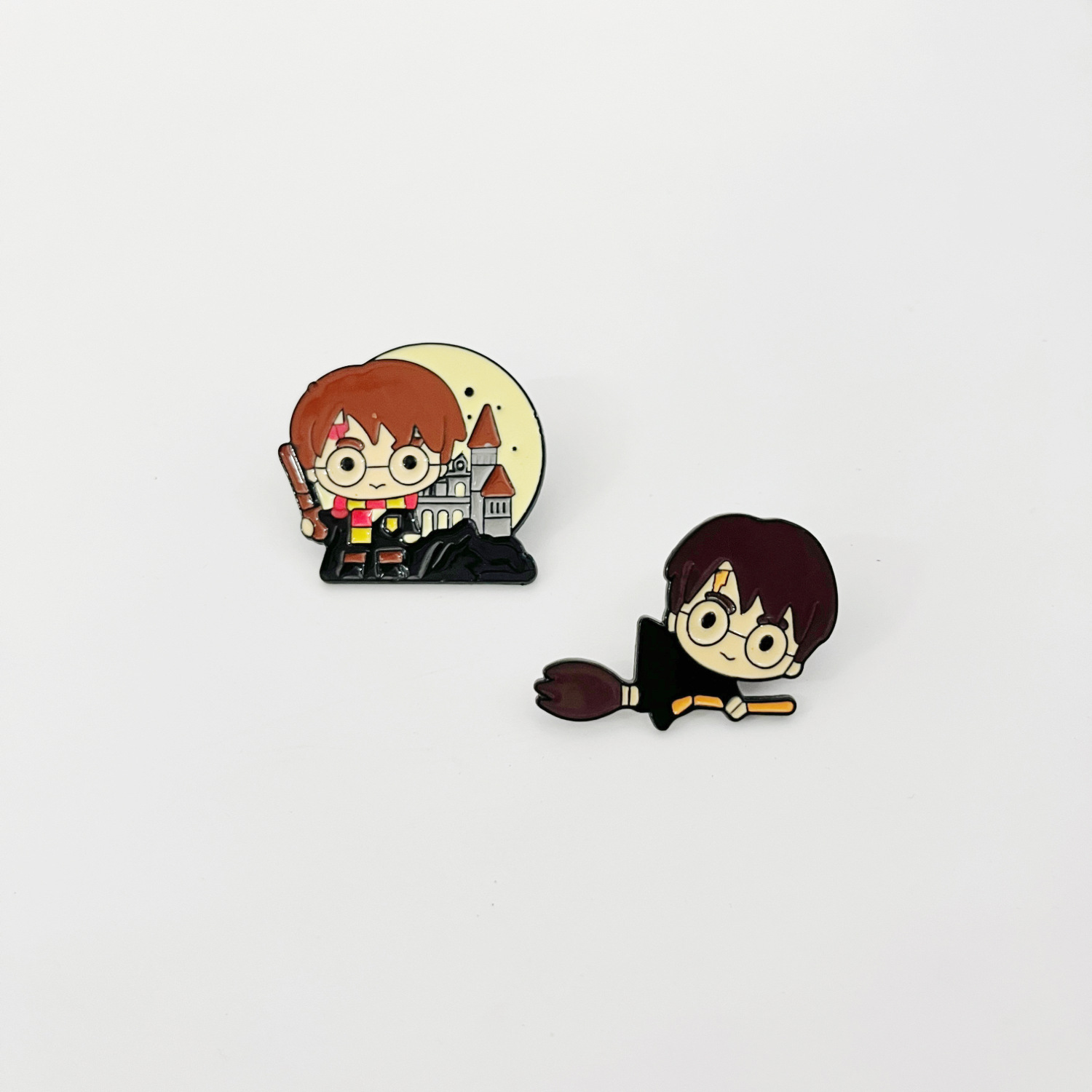 国境を越えた売れ筋漫画周辺金属バッジ Q バージョンかわいいほうきに乗って魔法のキャラクターブローチ合金アクセサリー