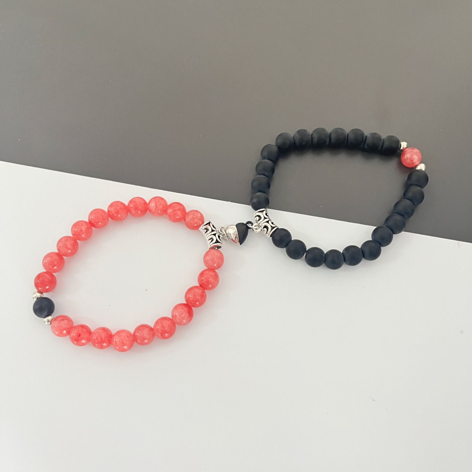 国境を越えた人気のフロストルビンストーンカルセドニーカップルブレスレットハート型マグネット吸引クリスタル天然石ブレスレット卸売