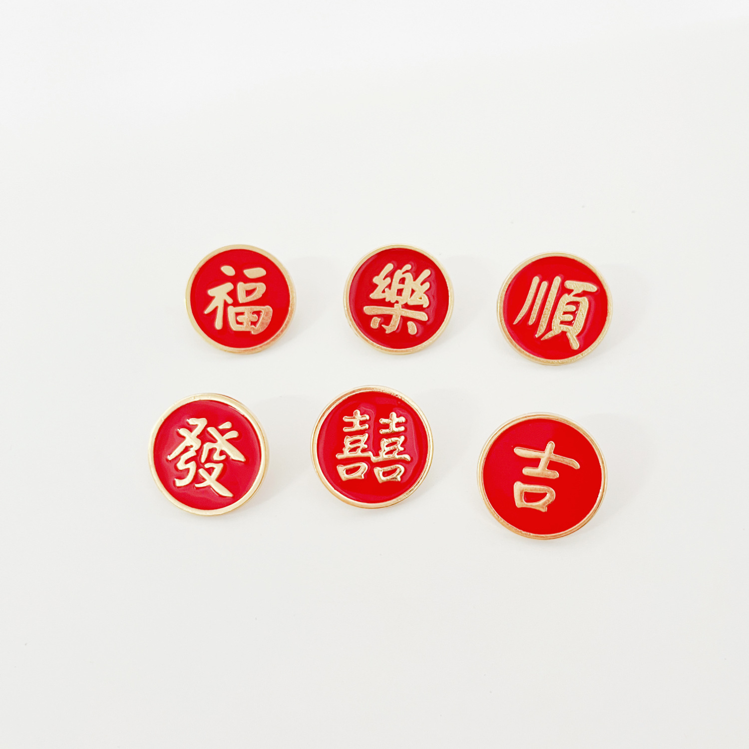 中国風の赤い文字ブローチ Shunjile フォーチュン ビッグ ブレスラント ラウンドメダル メタルピン 衣類ピン
