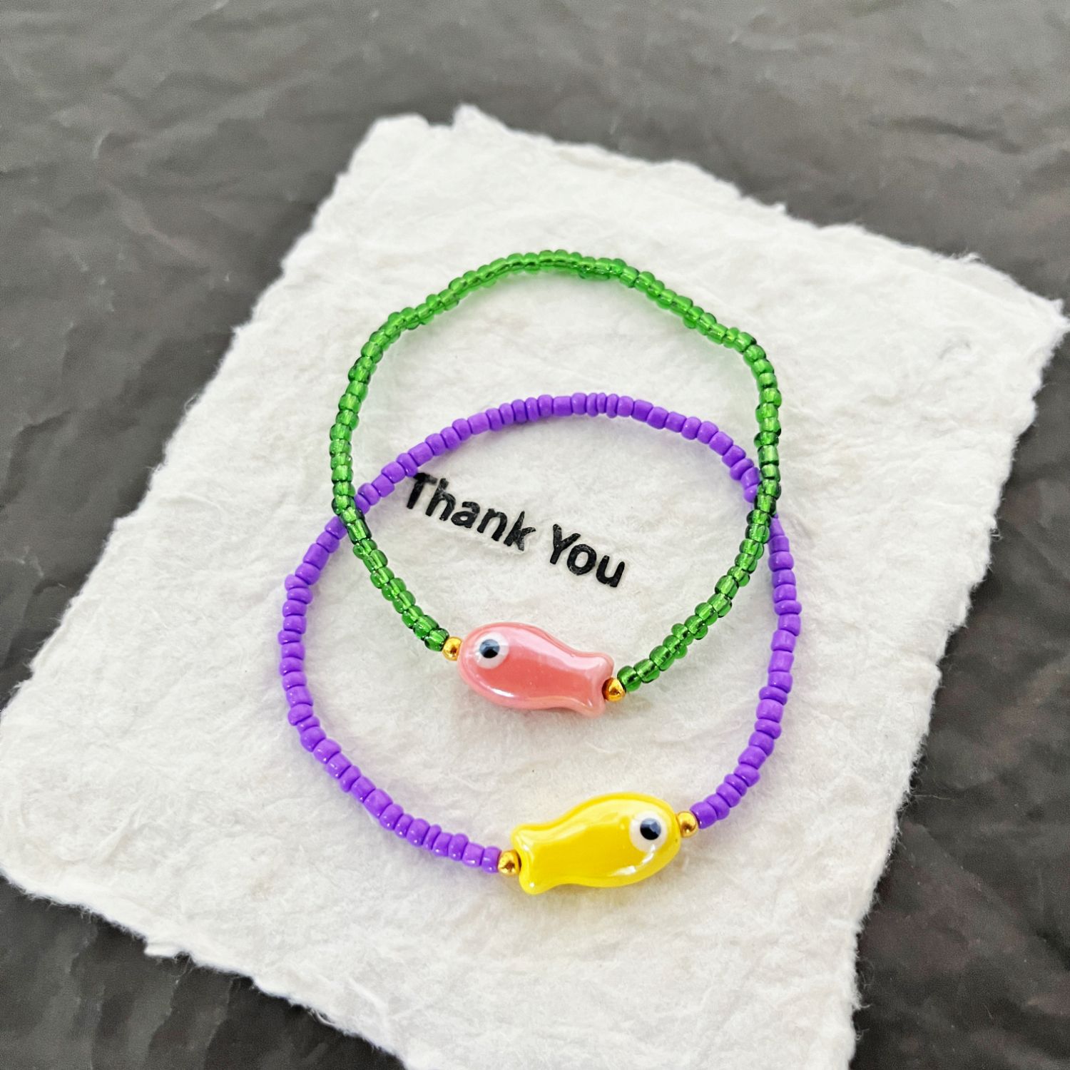 ボヘミアンスタイルのカラフルなシンプルなセラミック小魚ライスビーズブレスレット女性のための甘いドーパミンビーズブレスレット