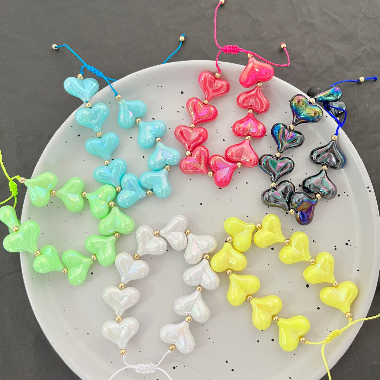 夏のファッションクロスボーダーホットスタイルシンプルインスタイルアクリルABカラーピーチハートビーズラブブレスレットブレスレット