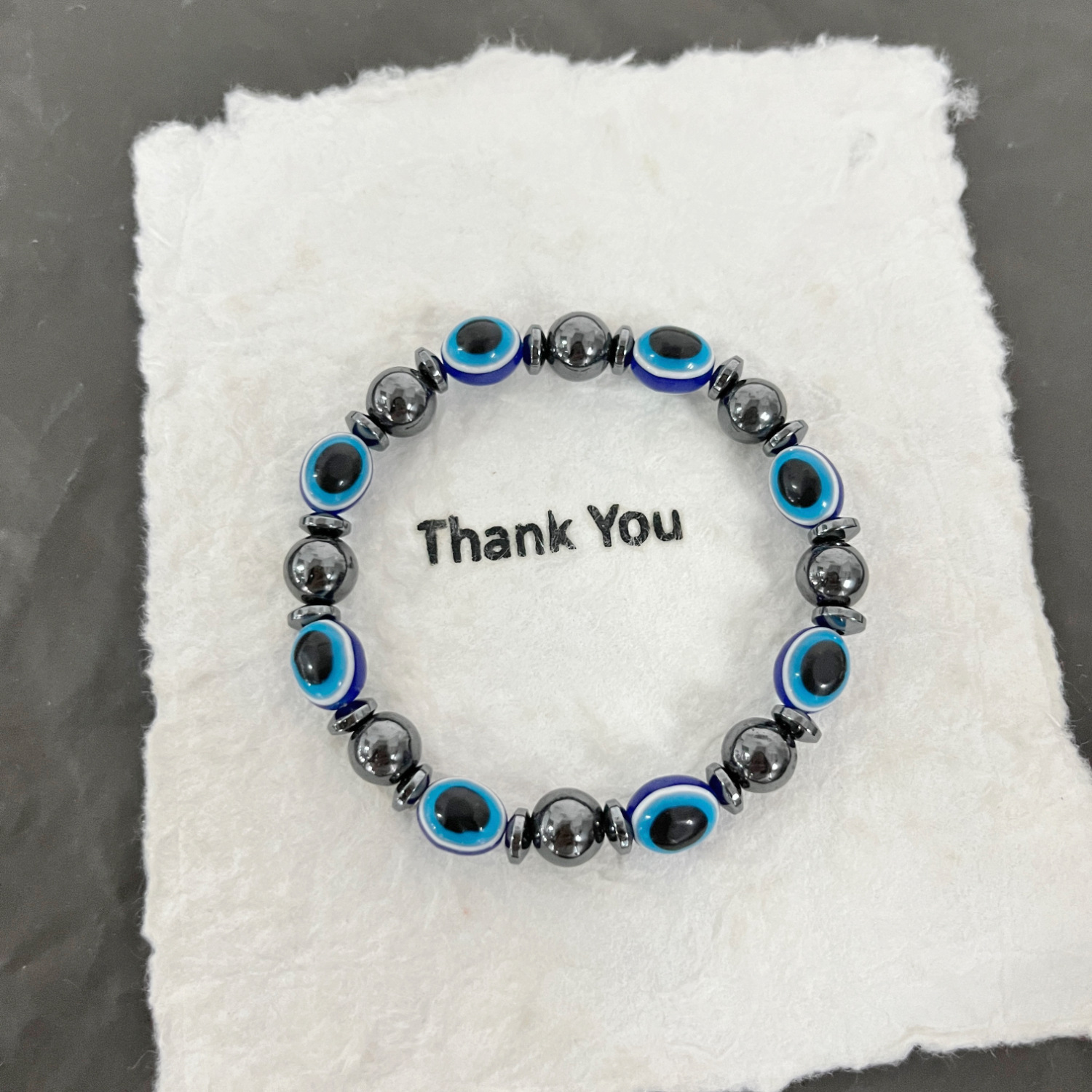 クロスボーダーアクセサリー新製品磁気ブラックストーンマグネット弾性ブレスレットブルーアイフラットビーズブレスレットヨーロッパとアメリカの人気のジュエリー
