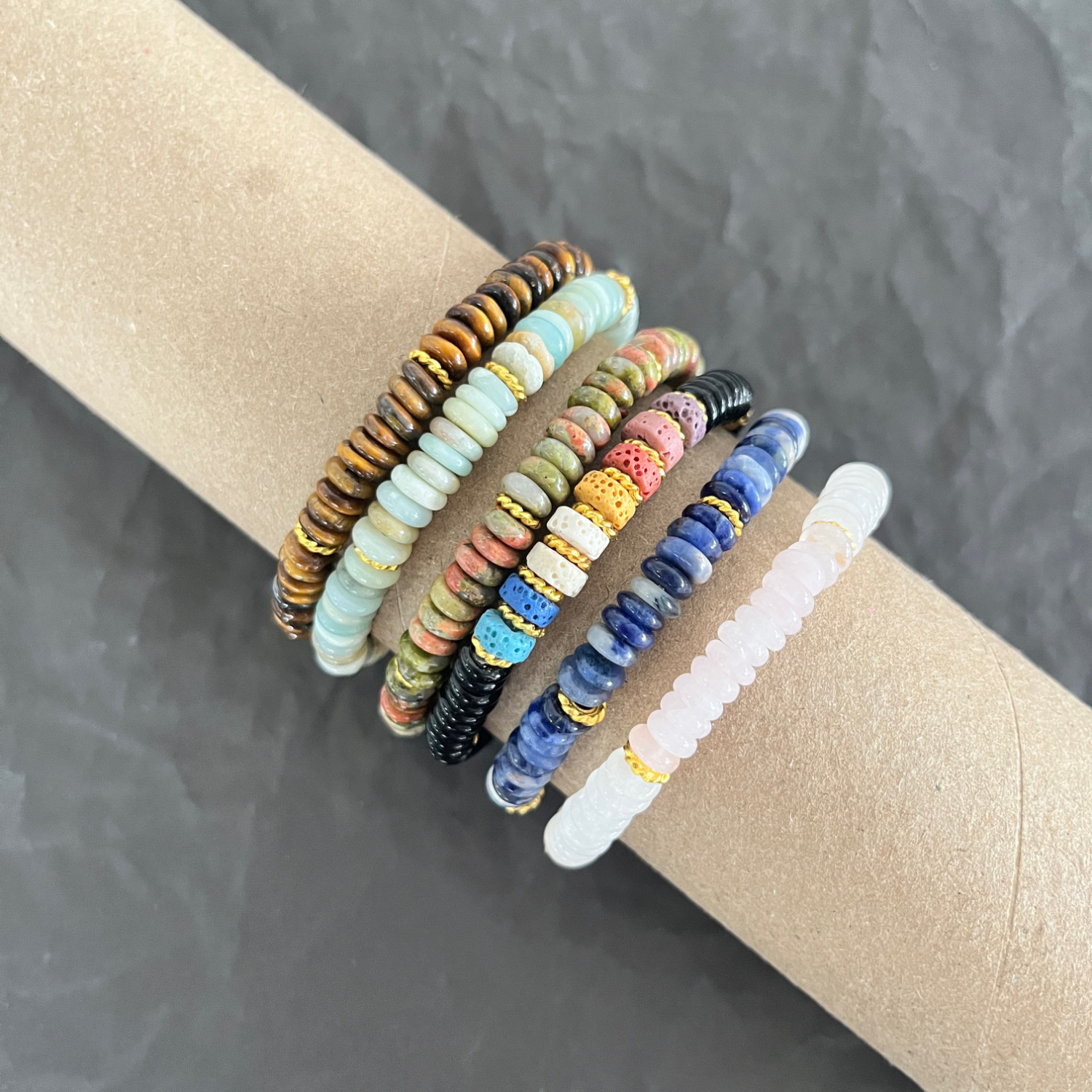 ヨーロッパとアメリカの国境を越えたtemuホットセールレトロシンプルライト高級天然フリスビークリスタルビーズブレスレット火山石ギフト