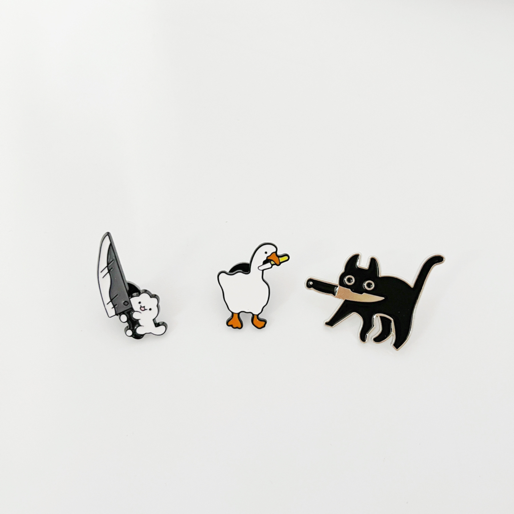 ナイフを噛むトレンディな個性の子猫、かわいくて創造的な日本製合金ブローチ、ナイフ、黒猫のバッジ装飾