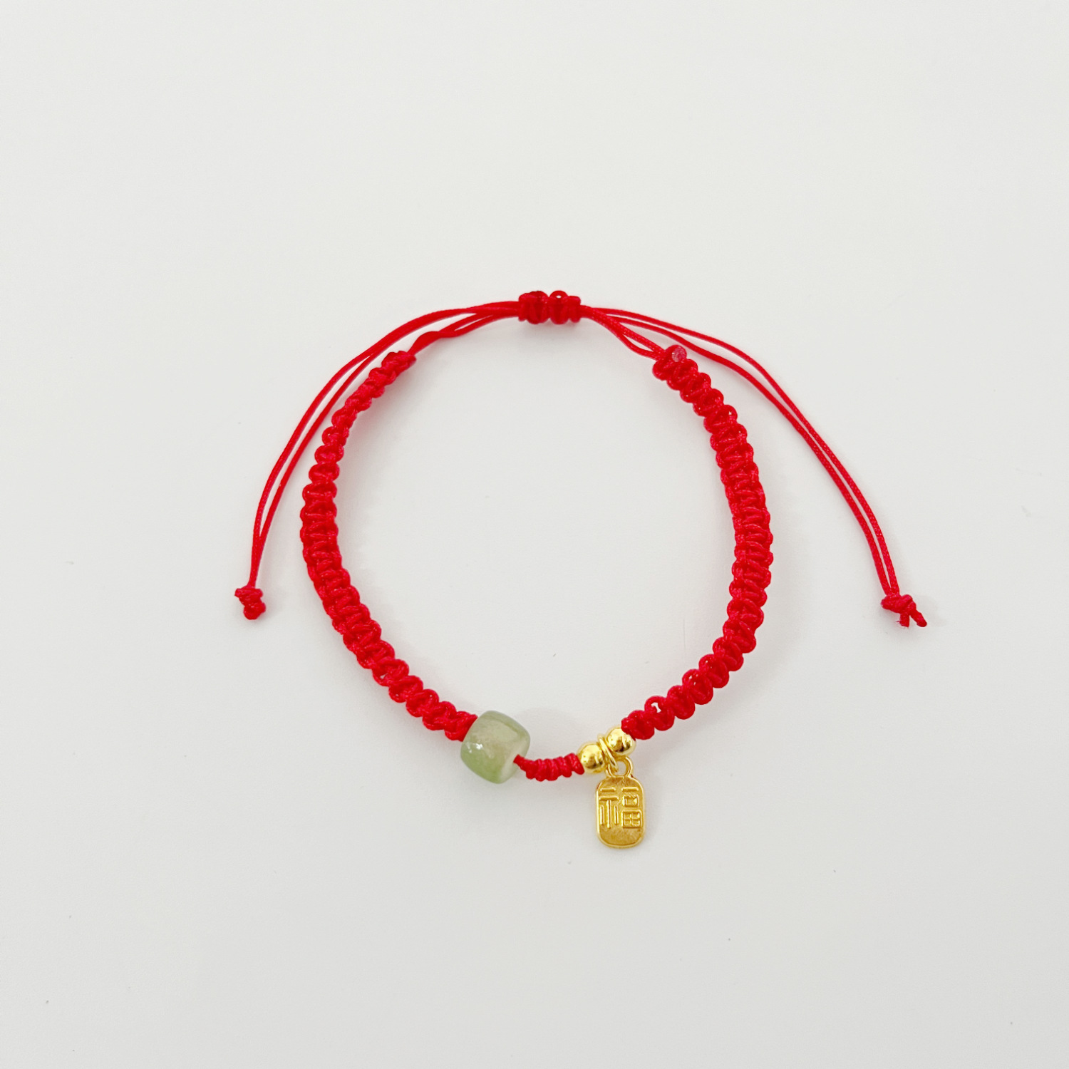 女性の誕生年用の模造ホータン翡翠の幸運のブレスレット、赤いロープ、幸運のビーズ、編まれたブレスレット、ニッチなデザイン、親友の友情