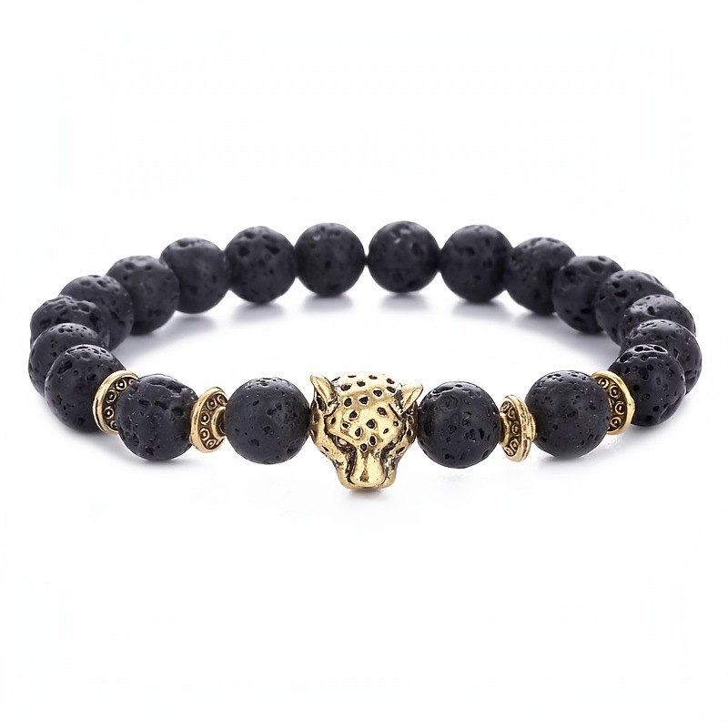 欧米のクロスボーダーの新型の獅子豹の手作りの数珠の手は天然の溶岩の火山石のエネルギーの女性のブレスレットを結びます。