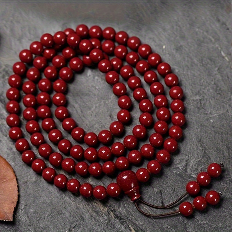 朱砂108玉仏珠ブレスレット 男女兼用 六字真言 多連ブレスレット 6mm玉 手作り多連ブレスレット