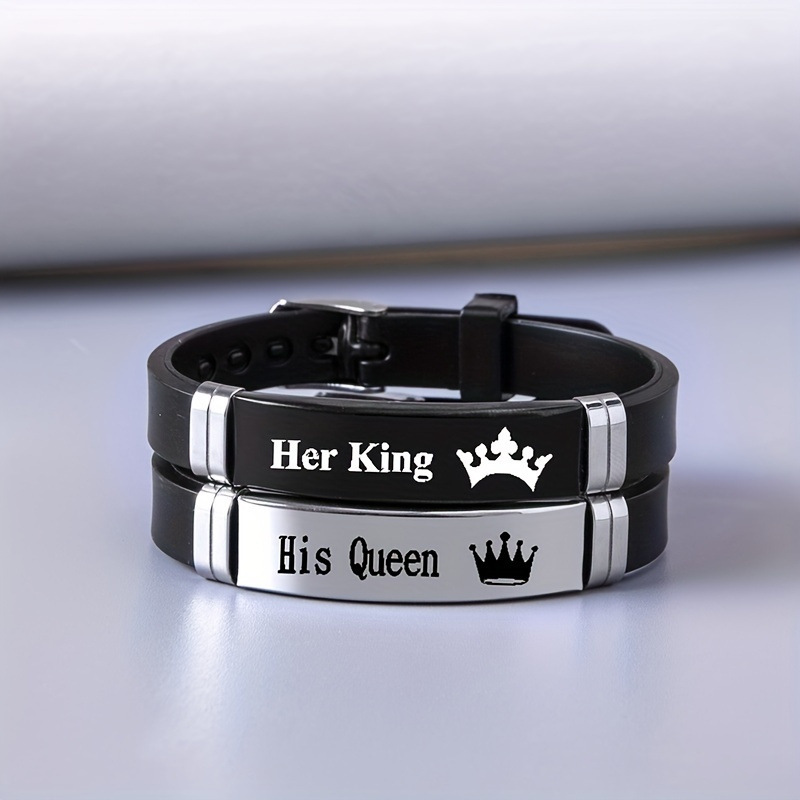 国境を越えて人気の王冠マーク彼の女王彼女の王カップルのネックレスレーザー彫刻シリコンブレスレット