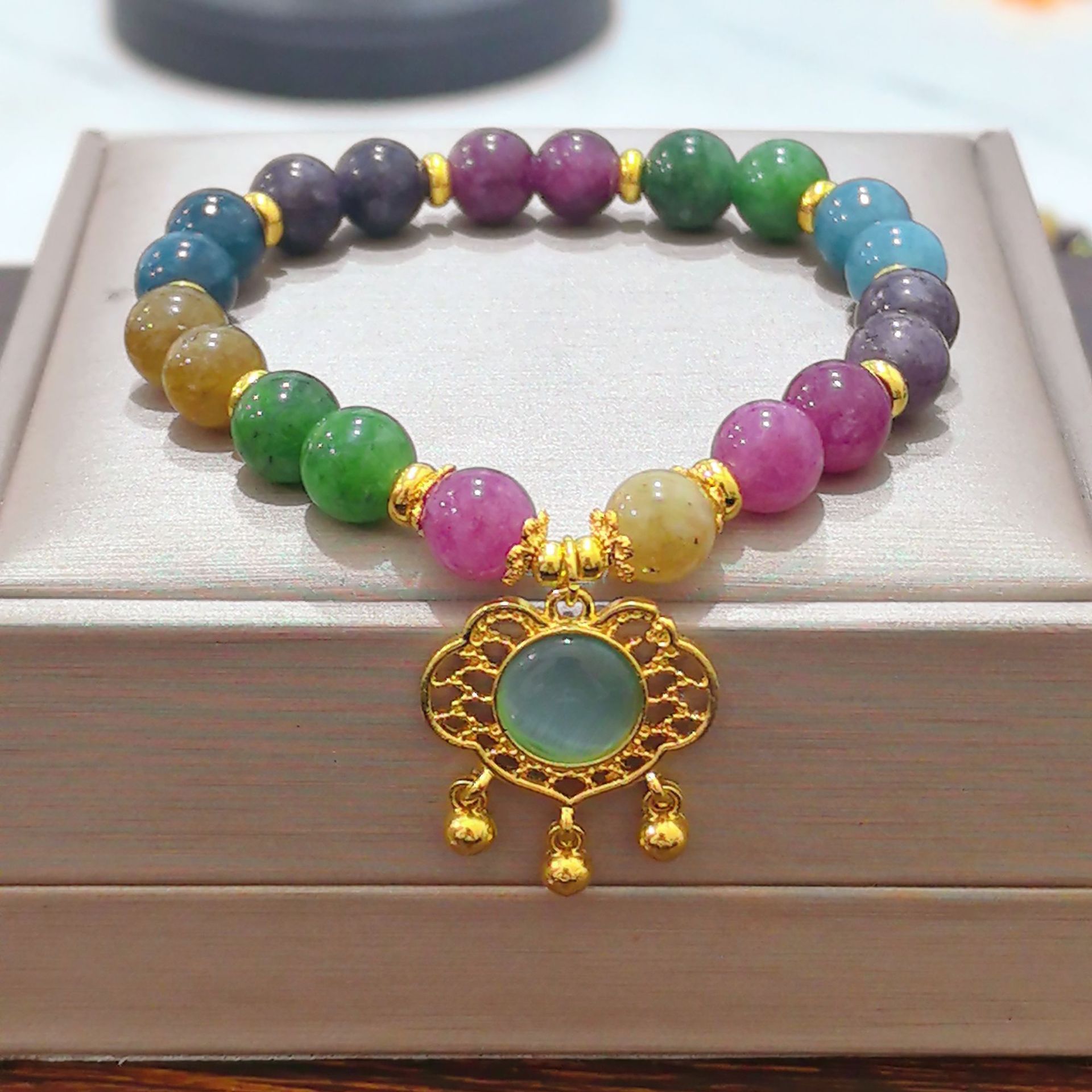 新しい色の碧璽のブレスレットinsの大衆の設計は意のままにダイヤモンドの碧璽の水晶の手の串をロックして彼女にプレゼントします。