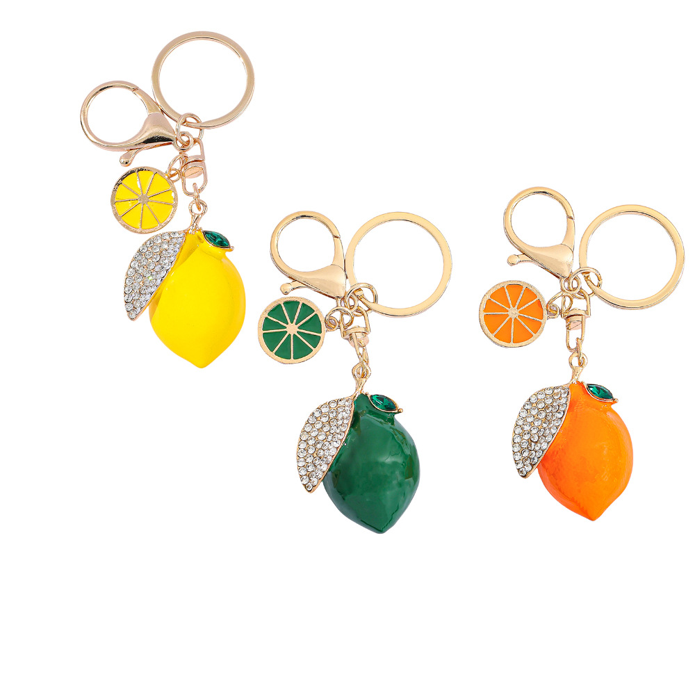 Amazon ベストセラー ラインストーン シミュレーション フルーツ レモン 車のキーホルダー バッグ ペンダント カップル キーチェーン ギフト