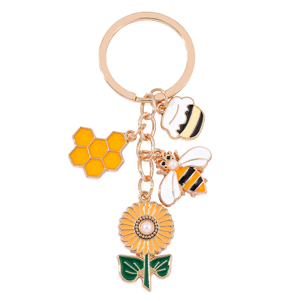 新しいホット販売ひまわりハニカム蜂蜜瓶蜂亜鉛合金キーホルダークリエイティブ車の装飾品ペンダント