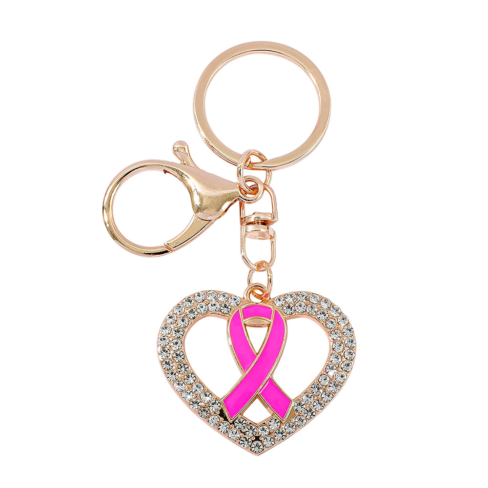 ローズゴールドダイヤモンドラブキーホルダーピンクリボン公共福祉広報ペンダントファッションバッグペンダント小さなギフト