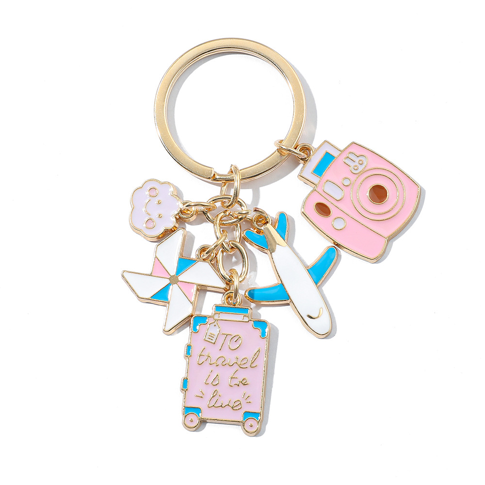 新しい記念オイルドリップアクセサリー地球スーツケース熱気球飛行機キーホルダー装飾ペンダント卸売