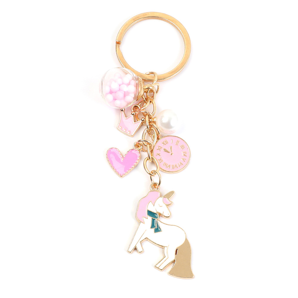 新しいホット販売ユニコーンとハート型ペンダント亜鉛合金キーホルダーラブクラウン時計ペンダント小さなギフト