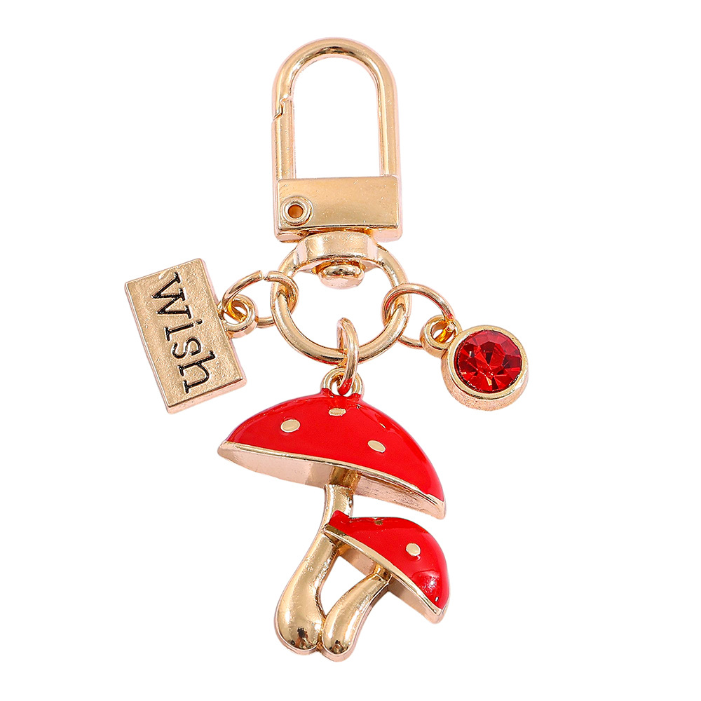 新しい片面赤い油滴シミュレーションキノコ亜鉛合金キーホルダー車のバッグ装飾ペンダント卸売