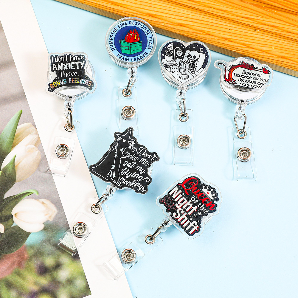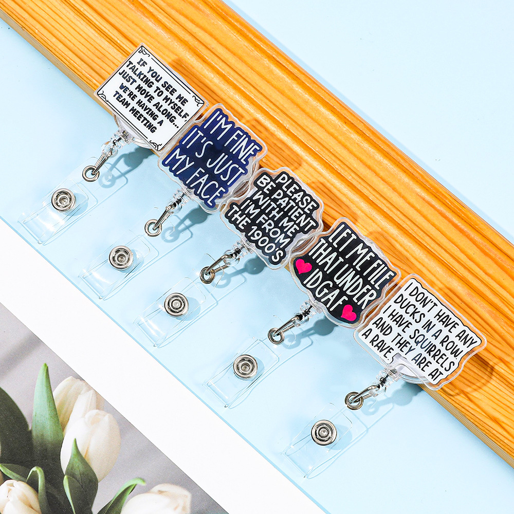クリエイティブな伸縮式バックル、伸縮式Dカードホルダー、言語でパーソナライズされたキーホルダー、装飾品、ペンダント卸売