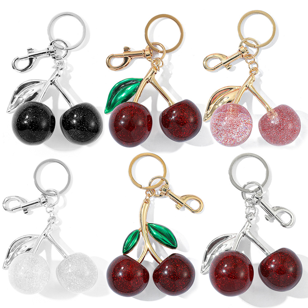 ヨーロッパとアメリカのファッションチェリーライト高級キーホルダーチェリークリエイティブレディースキーホルダーグリッタークリスタル模造フルーツペンダント