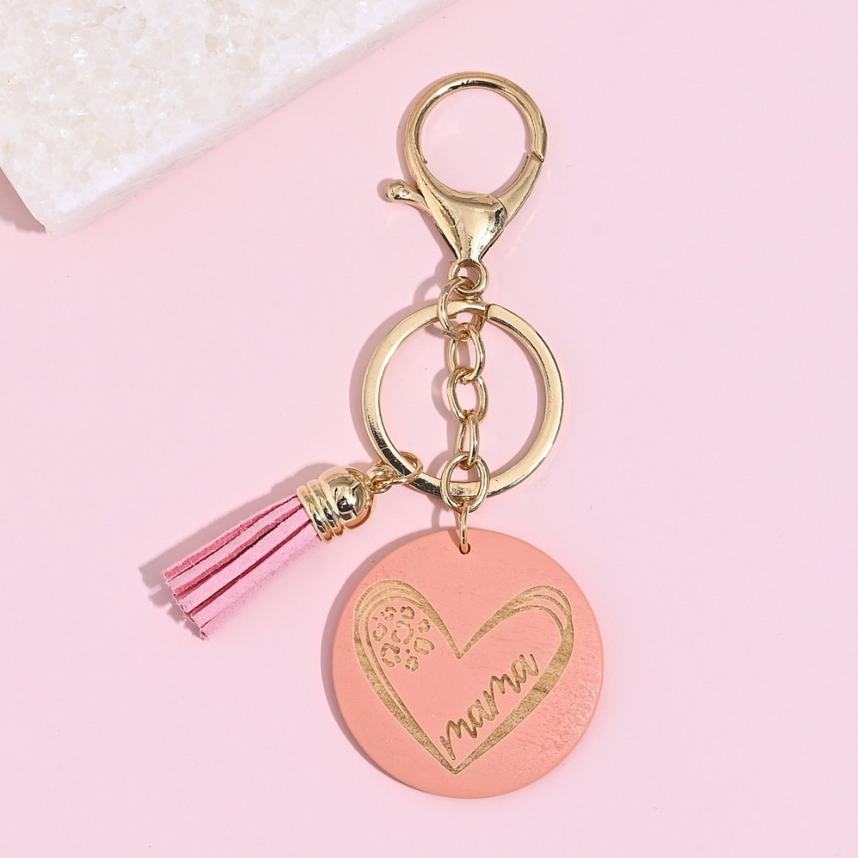 国境を越えた貿易ホットセール母の日キーホルダーママ木製ラウンドプレート彫刻愛タッセルクリエイティブバッグペンダント