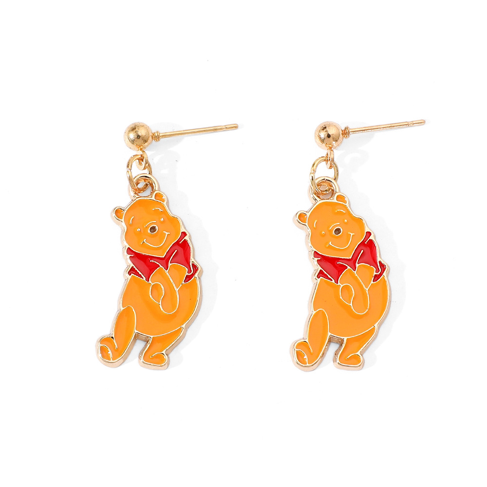 国境を越えた売れ筋の新製品かわいい日本の漫画アニメーションくまのプーさん合金オイルドリップイヤリングジュエリー卸売